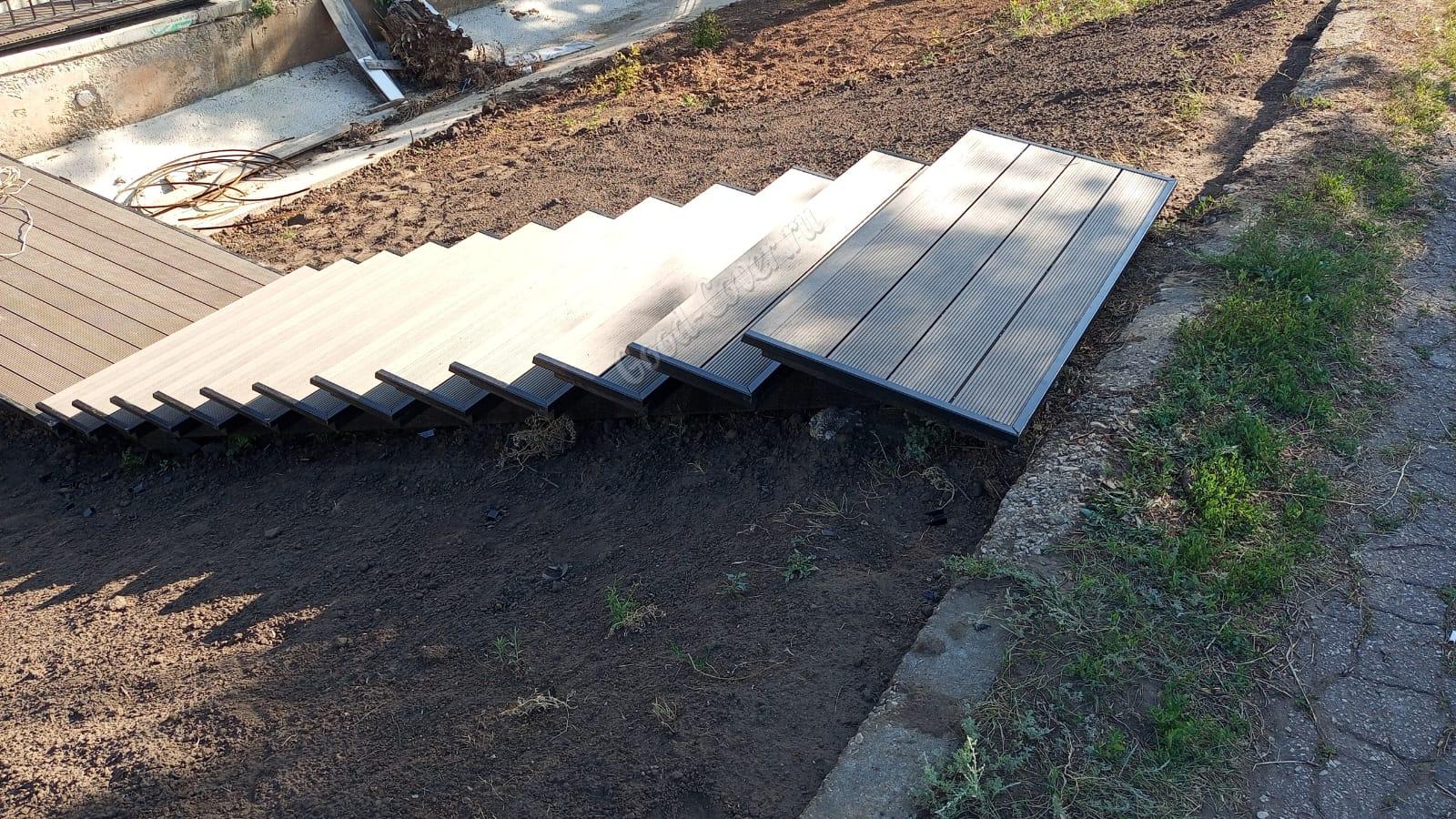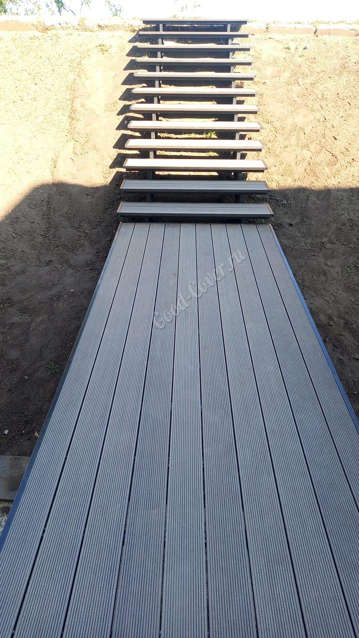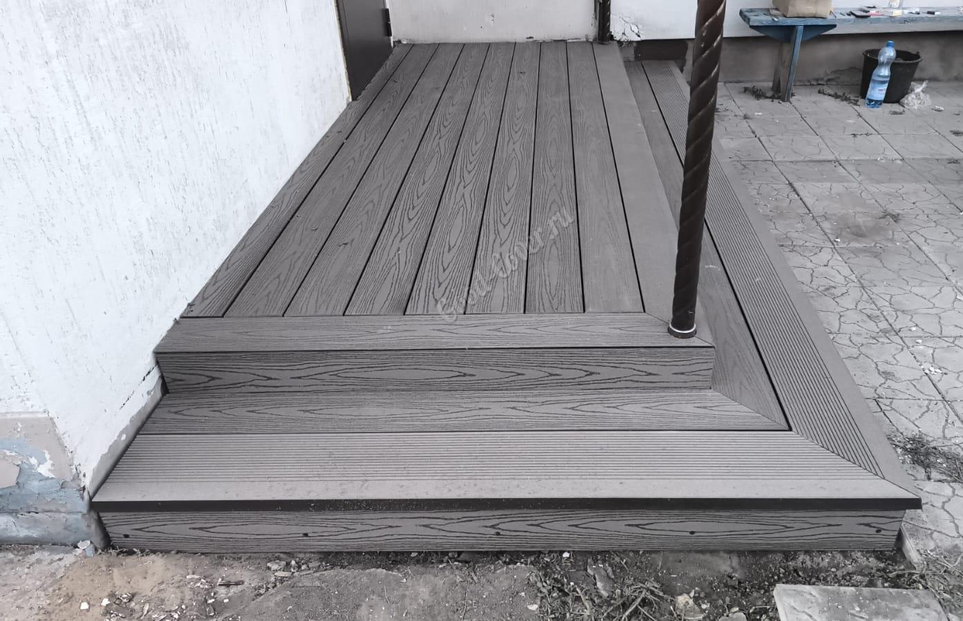 Укладка террасной доски из древесно-полимерного композита на крыльце + лестнице