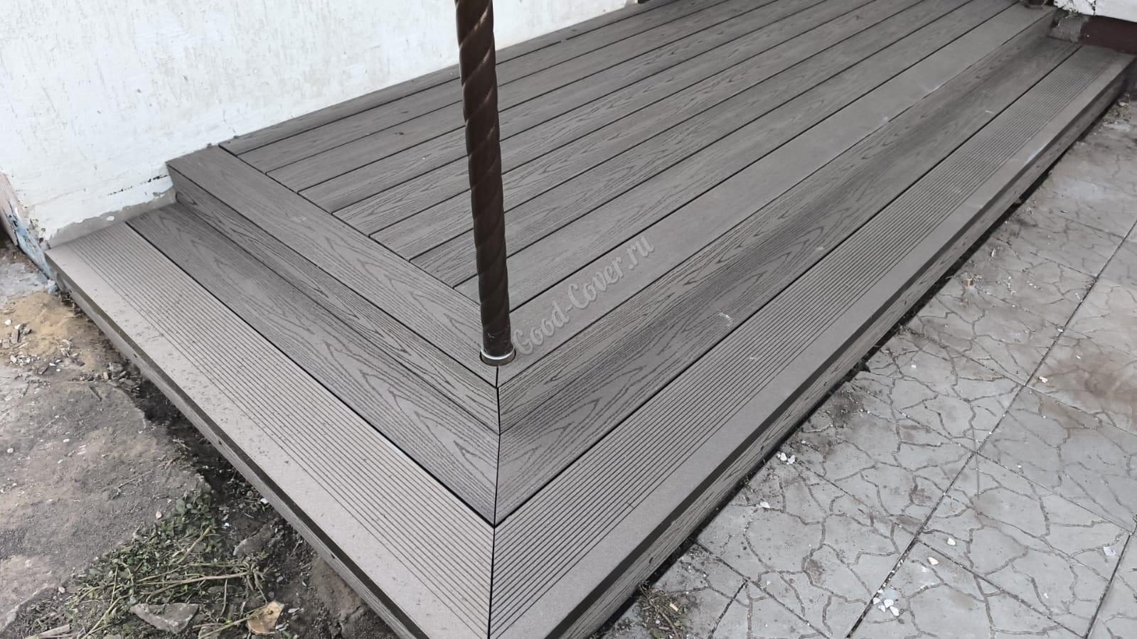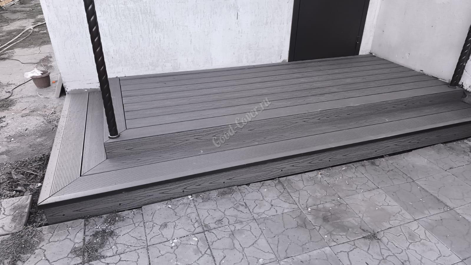 Монтаж на крыльце из террасной доски и ступеней ДПК Good Cover цвет графит